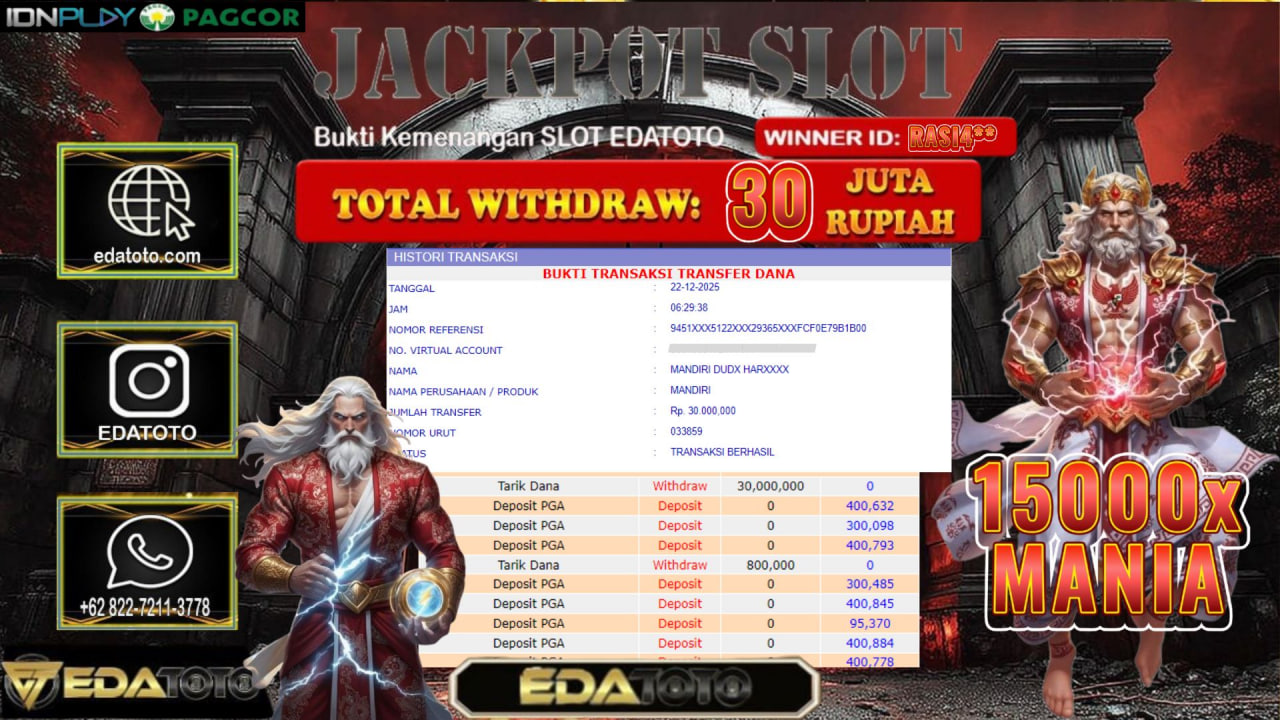 Selamat Kepada Pemilik user ID : rasi4** Hari/Tanggal :kamis/ 22, Desember 2025 Jackpot : Rp. 30,000,000 JT Withdraw : 30,000,000 . . .