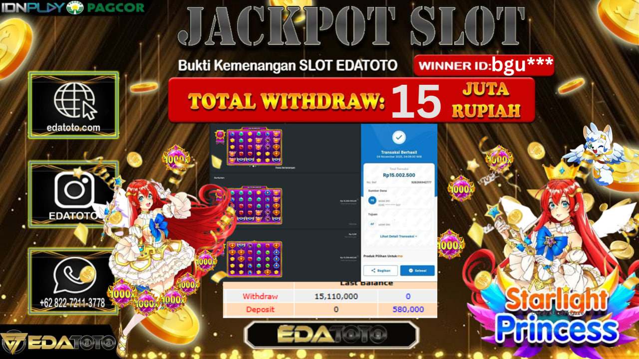 Selamat kepada member setia EDATOTO telah mendapatkan JP Bermain Di ; Starlight Princess 1000