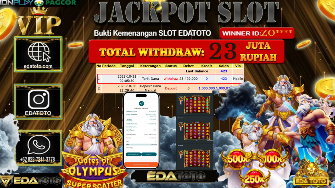Selamat kepada member setia EDATOTO telah mendapatkan JP Bermain Di ; Gates Of Olympus Super Scatter